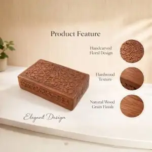 Each box is individually handcrafted by skilled artisans using traditional techniques. The fine detailing and unique carving make every piece one-of-a-kind, reflecting heritage craftsmanship with a luxury feel.