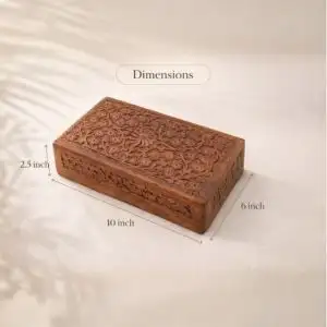 Be the first to review “Hand Carved Floral Wooden Box – Decorative Wooden Keepsake Storage Box for Jewelry, Watches, Coins & Trinkets, Multipurpose Treasure Chest Organizer, Gift Box, 10 x 6 Inch”