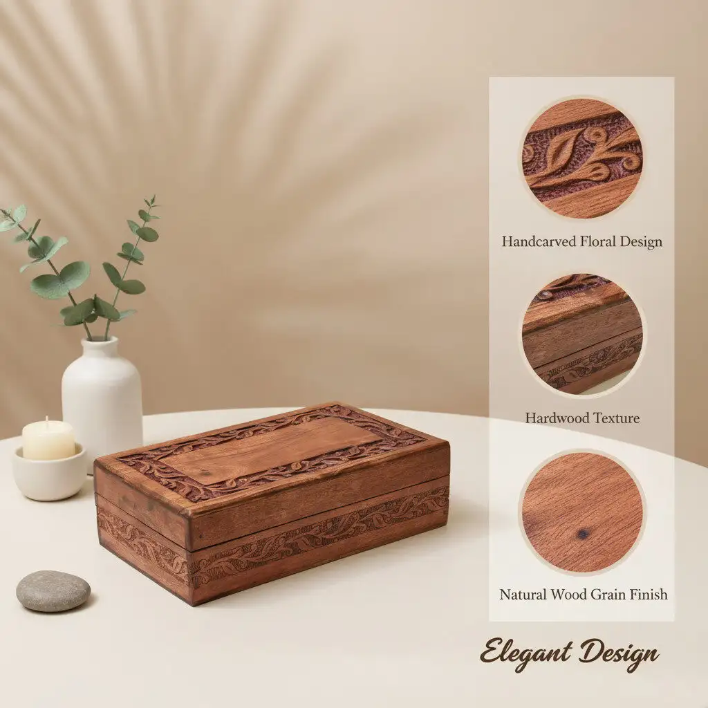 Each box is individually handcrafted by skilled artisans using traditional techniques. The fine detailing and unique carving make every piece one-of-a-kind, reflecting heritage craftsmanship with a luxury feel.