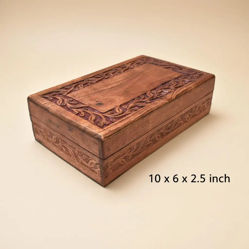 • Hand-Carved Wooden Jewellery Box – Elegant Artisan Design